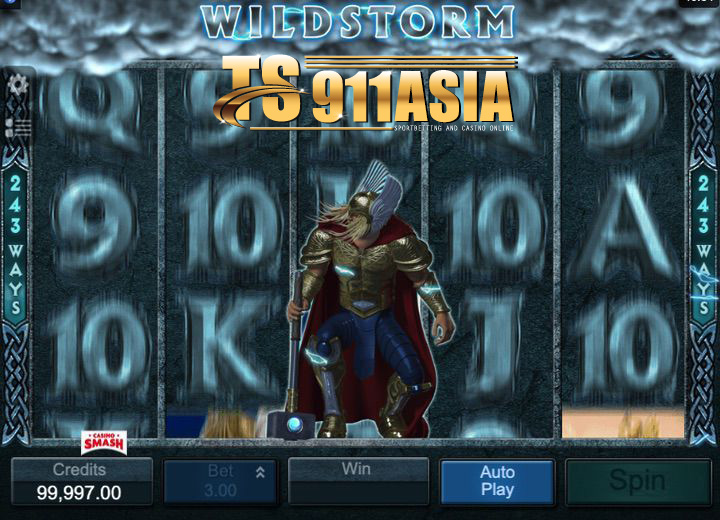 คอมโบที่ชนะเครื่องหมายเสริมพร้อมคุณลักษณะ WildStorm บน Thunderstruck II